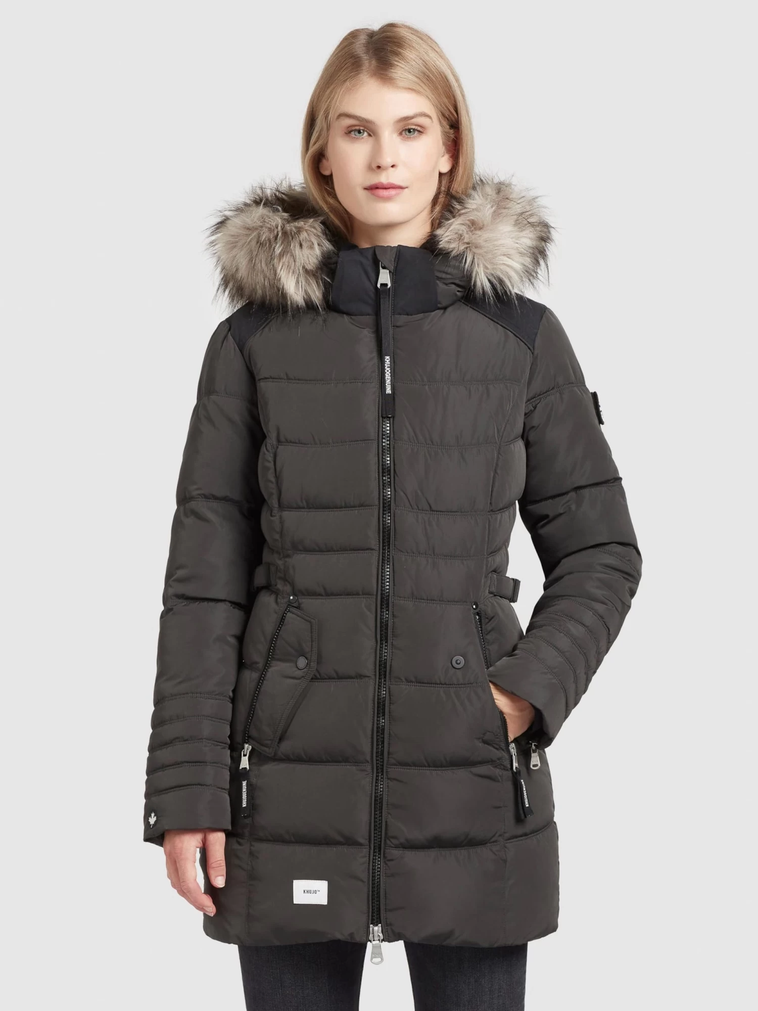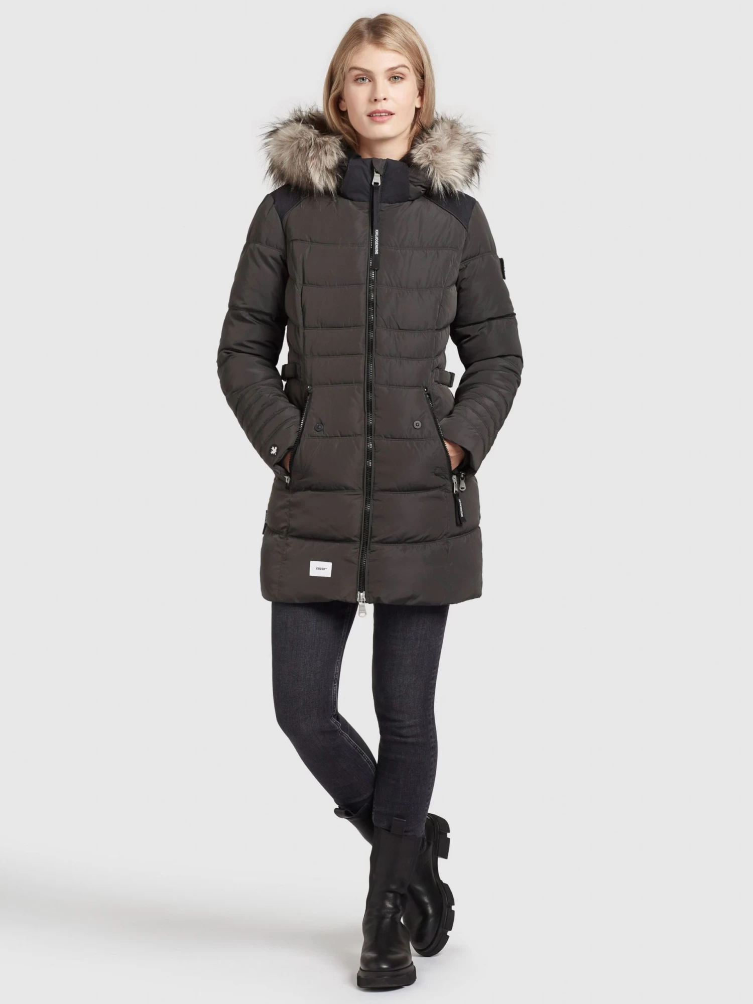 Khujo Wintermantels Wintermantel Amaray Dames Antraciet
